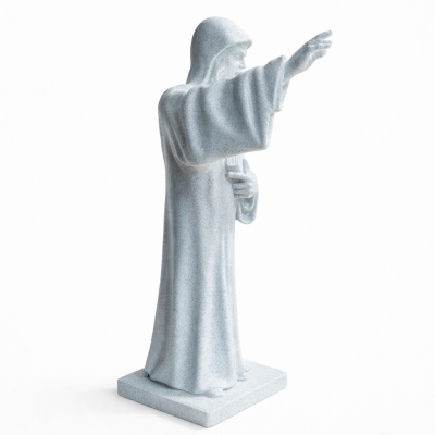 Ovaj pažljivo izrađeni kip napravljen je od ekološki prihvatljivog PLA materijala, koji je bio-razgradiv i siguran za okoliš. Svaki detalj je precizno oblikovan kako bi dočarao mir i blagost ovog svetog lika, od prepoznatljivih krila do nježnog izraza lica.