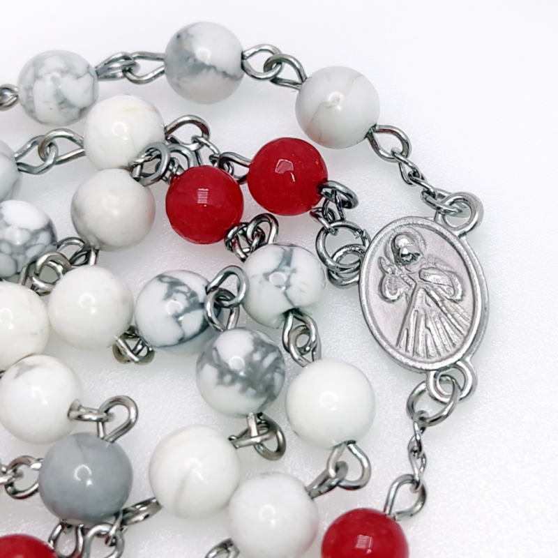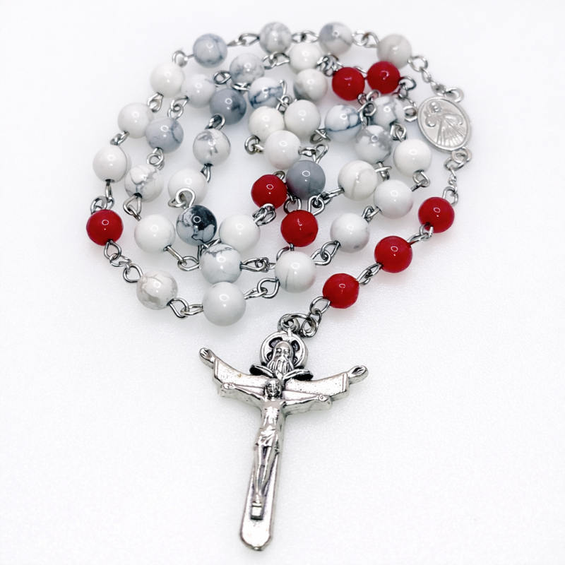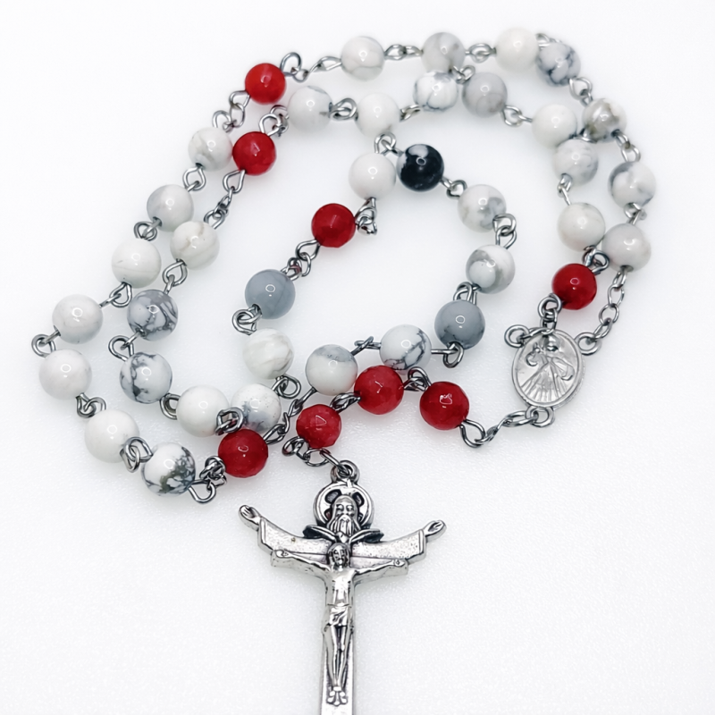 Krunica Duhu Svetom je izrađena u crvenoj i bijeloj boji koja simbolizira plamen i čistoću Duha Svetoga. Bijele perle su od poludragog kamena Haulita, a crvene perle su od poludragog kamena Ahata.