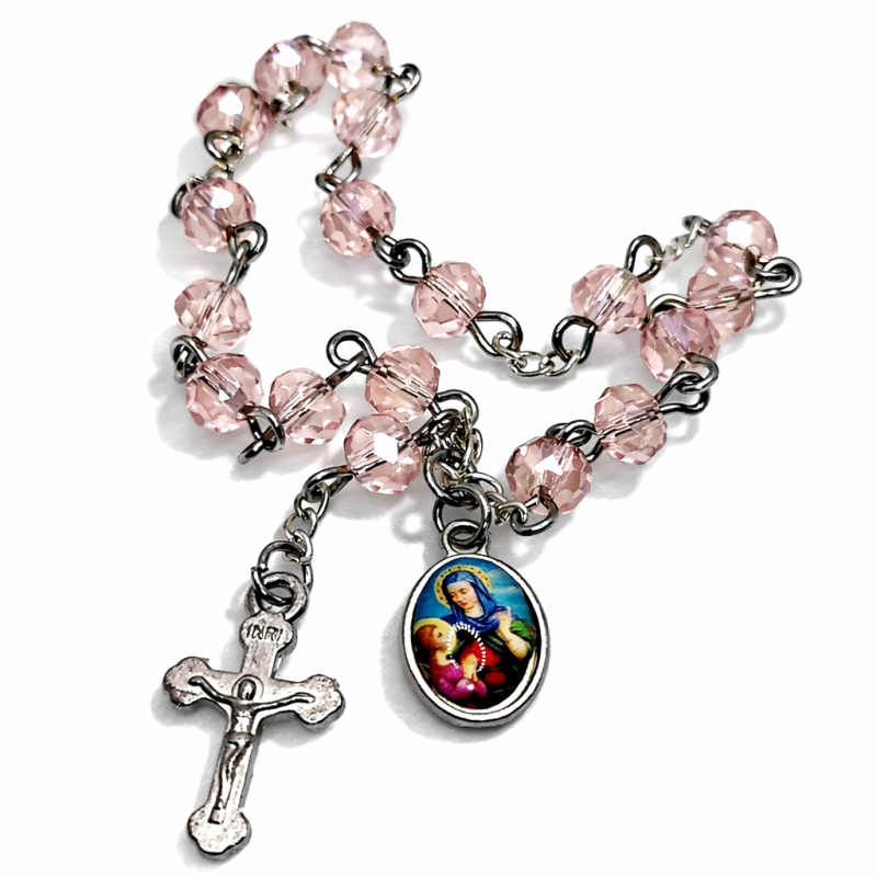Ručno izrađena krunica svete Ane od visokokvalitetnog češkog kristala, koja dolazi u kompletu s molitvenom karticom. Ova jedinstvena krunica nije samo alat za molitvu, već i prekrasan komad nakita koji će vas svakodnevno podsjećati na vašu vjeru.