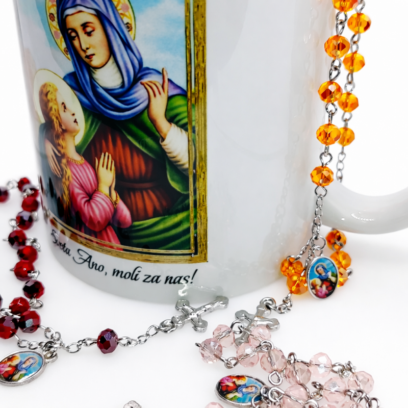 Ručno izrađena krunica svete Ane od visokokvalitetnog češkog kristala, koja dolazi u kompletu s molitvenom karticom. Ova jedinstvena krunica nije samo alat za molitvu, već i prekrasan komad nakita koji će vas svakodnevno podsjećati na vašu vjeru.