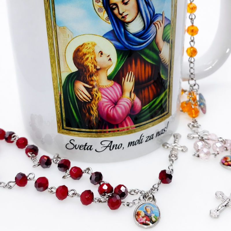 Medaljica sv. Ane: Središnji dio krunice sadrži medaljicu sv. Ane, zaštitnice majki i žena, koja simbolizira ljubav, mudrost i obiteljsku zaštitu.