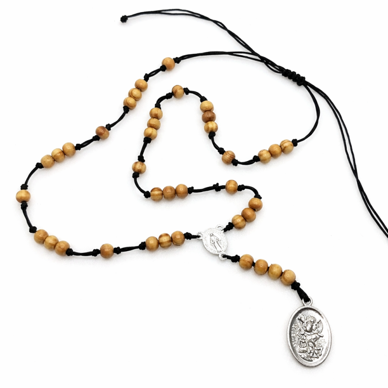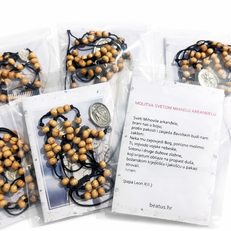 Otkrijte moć i ljepotu Krunice svetom Mihaelu arkanđelu i svetim anđelima, izrađene na špagi od perli drva masline. Ova krunica nije samo alat za molitvu, već i simbol zaštite, snage i božanske prisutnosti u vašem životu. Dužina je podesiva.